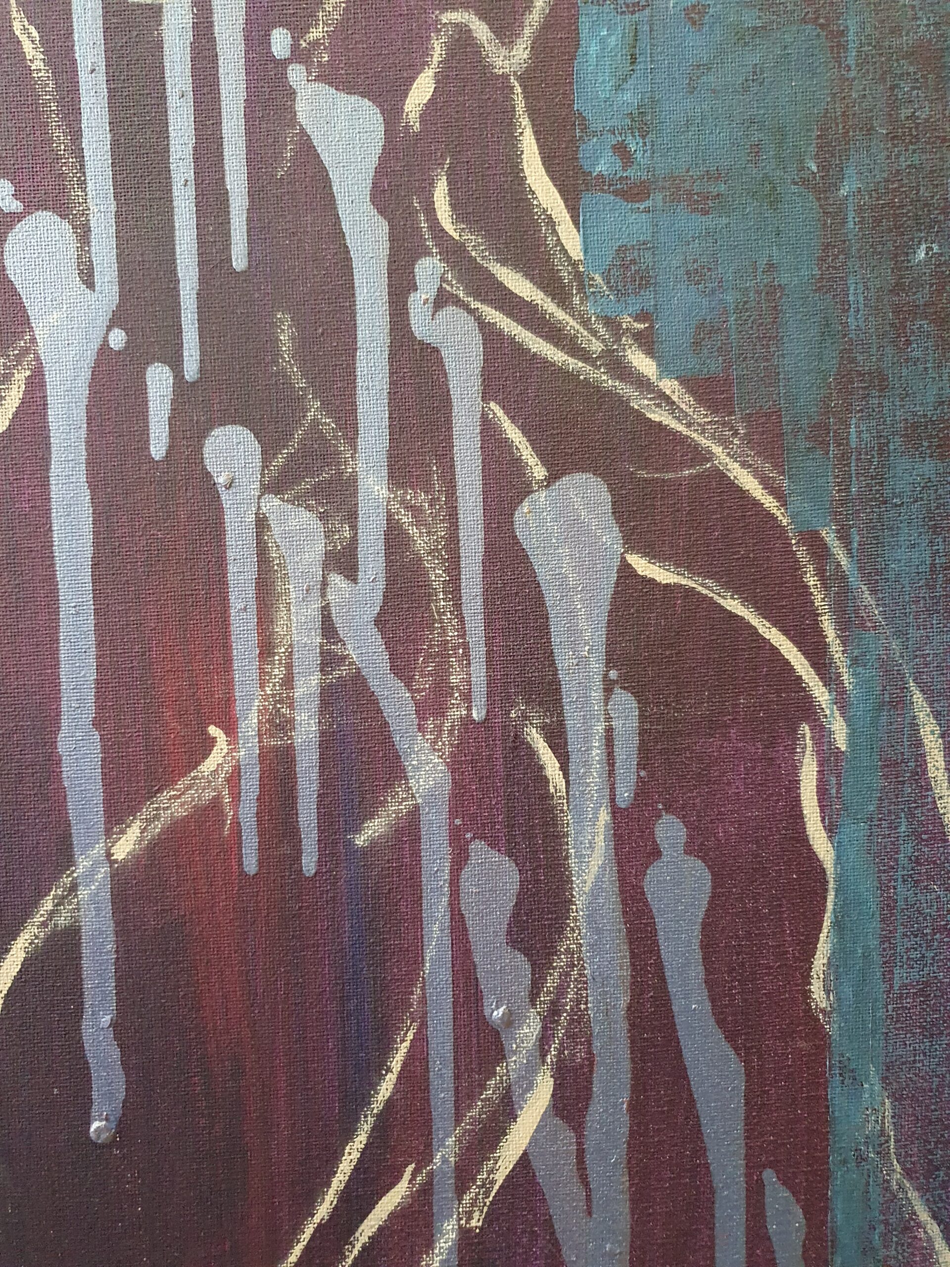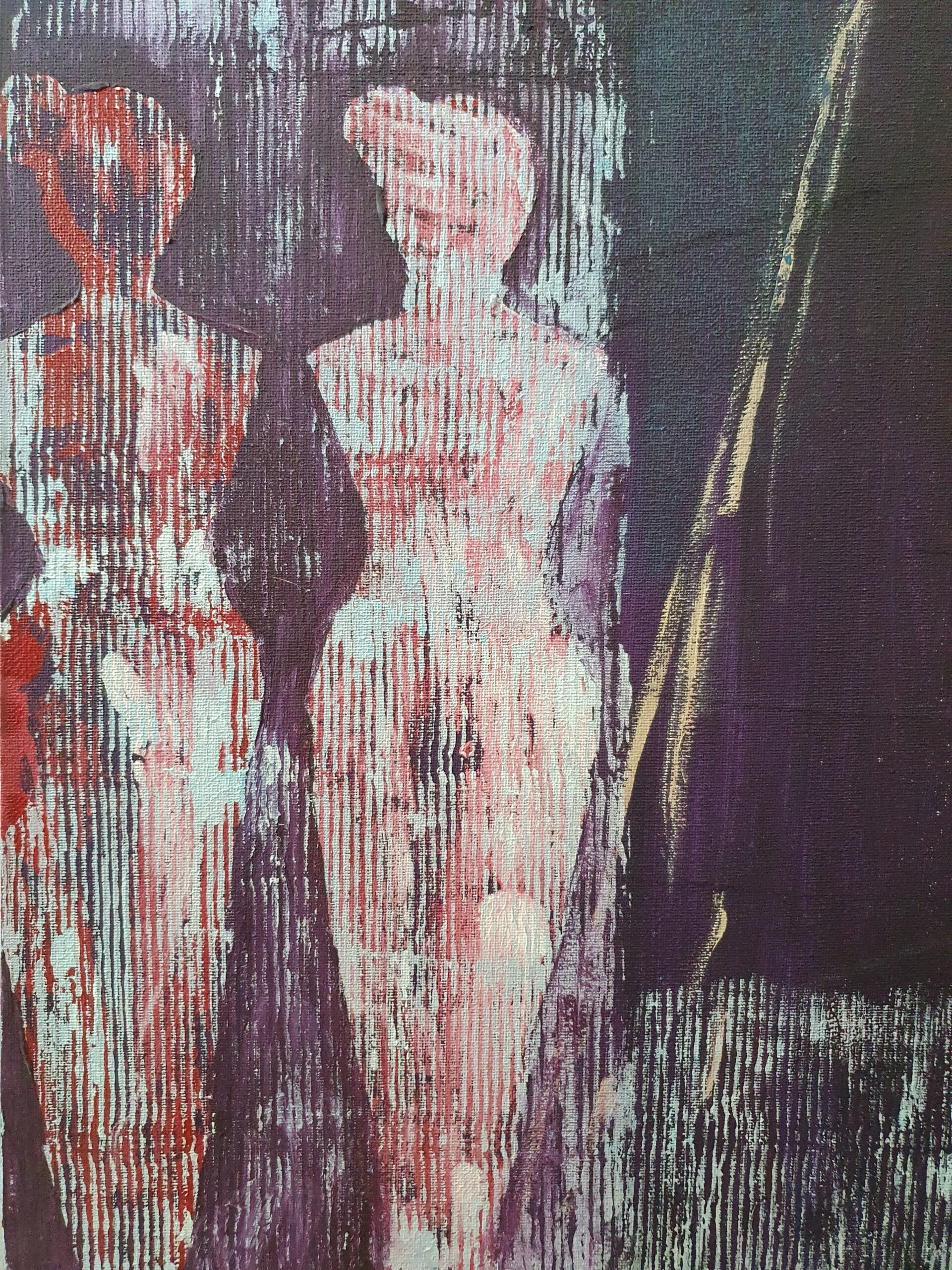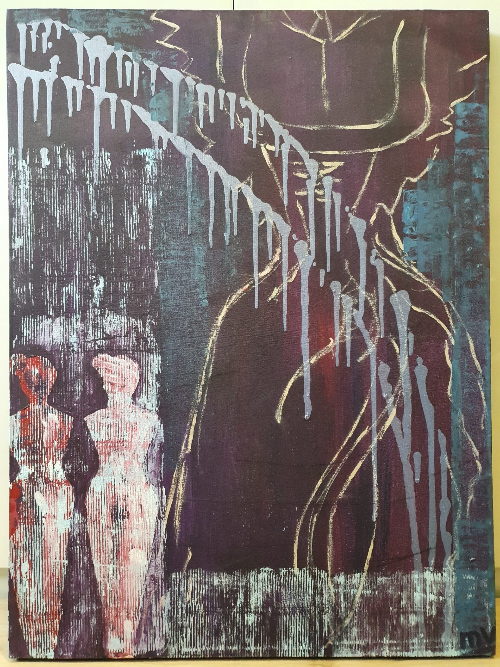 Een schilderij met herkenbare vormen, maar waar toch nog genoeg aan de verbeelding wordt overgelaten.